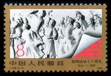 | 名稱“五四”運動七十周年1919—1989 版別影寫版 全套枚數1 全套面值0.08元 發行機構郵電部 原作者滑田友(雕塑) | 志編號J158 整版枚數50(5×10) 發行日期1989-5-4 全套售價0.08元 印製機構北京郵票廠 設計者何潔、李躍義 |