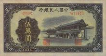 | 50000元 | 新華門 | 履帶拖拉機 | 藍黑、紅綠 | 1953.12 |