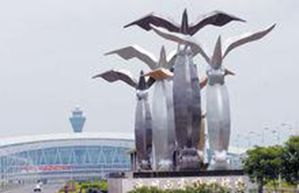 標誌性雕塑由純鋼鍛造而成,重175噸,象徵著飛機由廣州飛向世界五大洲。而從側面觀看,雕塑既像廣州的“廣”字又像飛機的尾翼,吉祥鳥拉長的尾巴非常有速度感 。