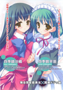 在白麗陵里也是數一數二的美少女,並且是個脫衣女。跟四季鏡早苗是姐妹,但由於家庭破產前已經交了白麗陵高中部的學費,所以在“上育科”學習。那種粗心大意和毫無自覺的XE和妹妹一樣。