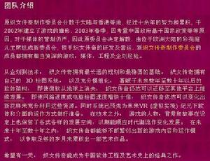 官方吹牛宣傳原織女傳奇製作委員會分散於大陸與香港等地, 經過十餘年的努力和累積, 於2002年建立了遊戲的雛形. 2003年春季, 因考量中國政府基於國家政策等等原因, 對於媒體的管制仍嚴, 因此原委員會決定解散. 由位於歐洲大陸的彩苑庭兒主席組成新委員會, 接手織女傳奇的研發及營運. 新織女傳奇製作委員會的成員都擁有相當資深的遊戲,媒體,工程及企劃經驗。