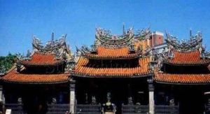 三峽清水祖師廟道光十三年重建,全部運用右材,五門三殿純中國式,銅門銅雕,石柱變化特多,集圓、方、菱形、螺形、四角形、五角形、八角形、十二角形等等,都是用七八厘米厚的柚木或樟木,刻出三四個層次的花樣後,塗上朱紅、金黃、靛藍等中國傳統的色彩,然後一塊一塊安裝起來。而這類木刻是祖師廟雕刻作品中數量最多的,屋瓦之下,壁柱之間儘是木刻,大大小小,上上下下,里里外外,錯綜鉤結,而又互相連線,將中國傳統式建築的精細、典雅、宏偉等各種風格,表露無遺。比如石柱上所雕刻的百鳥異獸和反映歷史上忠孝節義的故事“花木蘭代父從軍”、“岳飛精忠報國”、“孔子問禮於老子”、“蘇武牧羊”、“田單火牛陣復國”等,神情姿態無不栩栩如生,常令遊客嘆為觀止。廟內供奉清水祖師,香火鼎盛,也為三峽鎮民的信仰中心。