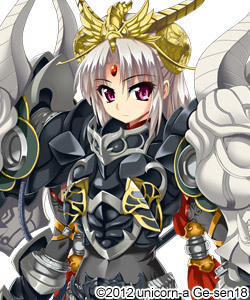 ![]() | 馬超 孟起 (ばちょう もうき) 北方騎馬民族之長·馬騰的女兒。 有激烈得說得上是激情的秉性和勇往直前的性格,正義感很強。 像在流動著的美麗銀髮和白銀戰衣,還有因那超群的勇武為畏懼被稱為“錦馬超”“神威將軍”和是羌族的混血兒,在不受漢王朝支配的民族中友著絕大的威信。 |