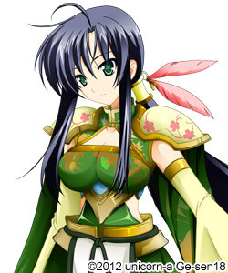 ![]() | 関羽 雲長 (かんう うんちょう) 劉備軍的主力,劉備玄德最信賴的武將。 與外表美麗成對比,和青龍圓月刀一起馳騁戰場,那英姿如鬼神般令人畏懼。 身為女性帶著凜凜的勇猛秉性,認真而溫柔的性格在民眾中有絕大的人氣,乃劉備的大德之一因。 |