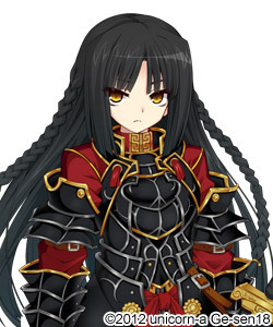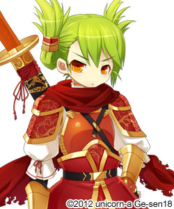 ![]() | 孫策 伯符 (そんさく はくふ) 孫堅的長女兼孫權的姐姐。 拔群的天賦和壓倒性的武勇讓人引以為傲,孫吳的年輕英雄。 極度不服輸的極高自尊,好戰且頑固,從精神上來說不成熟的地方較多。 但是毫無差別地公平待人,因為總是堂堂正正,所以深受人民和家臣信賴。 |
