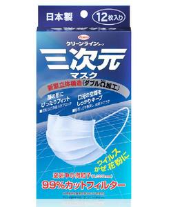 三次元口罩(包括女用、男用、兒童型)兼具了出色的口罩過濾層性能(對於0.1μm細顆粒物的阻隔率可達99%以上:阻隔99%的PFE)和確保呼吸順暢的性能,是最適合日常使用的高功能口罩。此款口罩可以抵禦PM2.5。