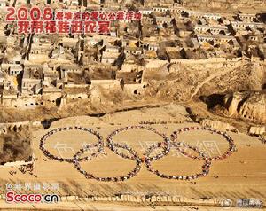 會場上,三畛村800名村民手持世界200多個國家的國旗,組成奧運五環標誌,表達了他們對北京奧運的殷殷期盼。隨著一個巨大的熱氣球騰空而起,上載3名攝影師對“五環”進行了空中拍攝,將活動推向高潮。