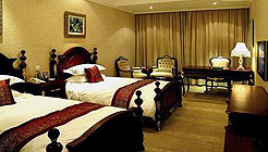 步入門樓,寬敞的林蔭大道、五彩的音樂噴泉歡迎著您的到來,穿過廊橋,便覺漸入人間仙境,成熟端莊間透出幾分靈氣和雅致;移步換景間,盎然情趣隨處可見,假山瀑布,長廊迂迴曲折,倚窗臨池,宛如天成的自然情趣撲面而來,翠竹、芭蕉、垂柳、玉塔逐一映入眼帘;池水噴泉、金魚、荷花,似一幅古畫,典雅、秀美、玲瓏、鮮亮,象一首形象的詩篇,凝練、耐讀、清新、流暢。此外,古華山莊利用長廊將各自獨立建築整合連成一體,為賓客帶來方便。利用古華山莊占地面積大,綠化環境優美的巨大優勢,營造了一個清新自然的最佳居住處,是賓客遠離喧囂的都市、企盼回歸原始的好去處。1:房間設施:24小時熱水、衛生間、淋浴、空調、電視、長途電話、床頭櫃、床頭燈