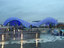 明日世界遊樂區(實景)客們將在壯麗穹頂下的軌道飛馳而過,高速進入由多彩燈光、投影和音效營造出虛實莫辨的幻想空間。等候區的遊客們可以在變色穹頂下幻象未來世界,隨著極富感染力的音樂觀看極速光輪在他們身邊飛馳而過。巨型穹頂呈波浪狀起伏,即使在遠處眺望也將為之震撼。穹頂採用半透明材料設計,當極速光輪呼嘯駛過,車上的脈衝會從穹頂透射出來。酷炫的藍綠光條在整座穹頂閃亮、幻化出不同光彩,如龍尾般在“創廣場”周圍翻轉擺動。