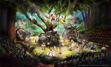 人猿泰山:叢林的呼喚”將在“故事舞台”上演,以充滿戲劇張力的講述方式重新演繹埃德加·賴斯·巴勒斯的故事:受到猩猩哺育的人類小男孩最終成長為叢林之王。該音樂劇採用迪士尼卡通片《人猿泰山》中菲爾·科林斯的經典配樂,並將逼真的戲劇效果與中國的雜技進行完美創新融合。