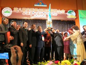 交接儀式由大會主席胡志雄、籌委會主席黃新民、執行主席徐祥財共同主持,由馬來西亞惠州聯合總會總會長拿督斯里李錦賢總會長率領代表團成員接領下一屆的主辦會旗及輪值杯。惜別晚會在全體貴賓乘坐豪華遊輪欣賞湄南夜景中順利、圓滿落下帷幕!