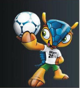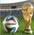 右圖為2014年巴西世界盃官方用球“Brazuca”及大力神杯。