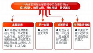 謝春濤指出,這輪改革範圍之廣、力度之大是空前的。以前統籌各方面的改革主要由國家發改委來承擔。作為國務院的一個職能機構,國家發改委在制定發展戰略,進行巨觀管理上發揮了重大作用。但是由於改革的複雜性和緊迫性,以及加強各項改革統籌協調的必要性,國家發改委在一些方面尤其是政策的制定上受到局限。相對而言,全面深化改革領導小組的成立更具權威性,能夠保證改革的設計、協調、推進和監督每一個環節的落實,有助於確保改革的系統性、整體性、協同性。