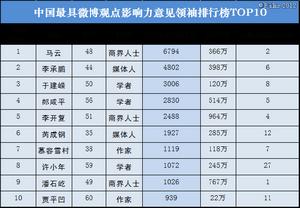 微博意見領袖的觀點影響力排行TOP10
