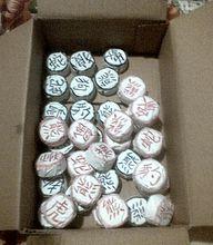 棋子:雙方各十枚,均有方向性,以實有漢字為名稱,漢字棋中心向外的筆畫為走吃規則(另見圖文)。
