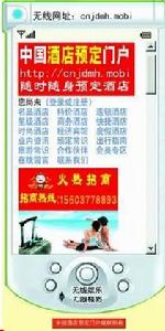中國酒店預訂行業門戶是推動酒店企業在3G網路上實現新媒體傳播、移動商務運營、無線及時溝通的集成型系統服務運營平台,其行業整合的推廣理念和3G網路無線通訊的全新行銷模式,形成一個3G無線信息網路。它所有功能設定和增值服務,都為使用者提供完善、高效的3G體驗,完美體現3G時代強勢商務內涵。