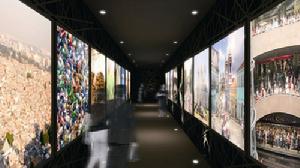 巴西館的中央展廳是一個由4塊長方形螢幕組成的全景舞台,