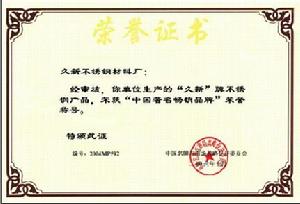 2006年:“久新”牌不鏽鋼產品 榮獲“中國著名暢銷品牌”證書。