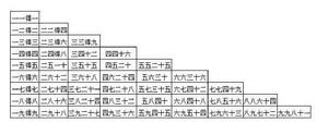 1×9=9 2×9=18 3×9=27 4×9=36 5×9=45 6×9=54 7×9=63 8×9=72 9×9=81