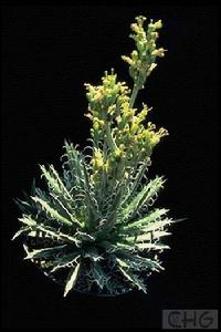 龍舌蘭科龍舌蘭屬植物。又名姬亂雪。原產墨西哥和美國西南部。這是一種小型的龍舌蘭,植株呈蓮座狀,株幅15厘米,主莖不明顯。葉尖硬,狹披針形,長10厘米、寬1.2厘米,葉先端有灰褐色刺,葉暗綠色,葉面有不規則的白色縱線條,葉緣角質有白色下垂的細絲,偶有稀疏的齒。穗狀花序1—1.5米高,花黃或黃綠色。本種株形小巧,葉緣下垂的白絲非常美麗,繁殖困難,是龍舌蘭屬中的珍稀種類,目前被列為一級保護植物。植物園應作為珍貴的標本收集陳列,也適合部分愛好者家庭栽培。