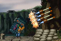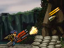 第三關:帶些火箭筒之類的武器,打大飛機時按住滑鼠左鍵,然後瘋狂上下滾滾輪,子彈會發的超快,算是個BUG,打完後,在BOSS前還有彈藥補給,像前面一樣打BOSS就行。