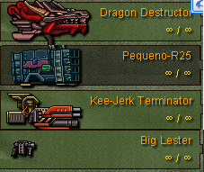 武器有9個選框,每一種都有不同的武器。前4種沒攻擊力,EFG種只有1種好用,藍色飛箭。H I 是最強的武器,這四種武器是最強大的。