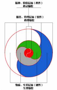 ★ “五色時空”人類生境自組織理論作為認識論,在人類生態系統“過去”、“現在”、“未來”時間跨度中,無色時空(人體感應感知信息範疇)與藍色時空(水體形態範疇)形成陰陽關係,兩者環抱而立生成天道太極;灰色時空(土地形態範疇)與綠色時空(生物形態範疇)形成陰陽關係,兩者環抱而立生成地道太極;紅色時空(人文形態範疇),以西方科學理論與東方文化思維形成陰陽太極關係,兩者環抱而立生成人道太極;無色時空、藍色時空、灰色時空、綠色時空與紅色時空由天道、地道、人道三重太極疊加生成一個有機統一的“五色時空”整體耗散空間結構。“五色時空”整體耗散空間結構中的物質、能量、信息分析研析於“過去”,把握於“現在”,實現於“未來”的不同時間集合,以同體共生、相互對待、交流平衡、循環再生、生生不息運動著。