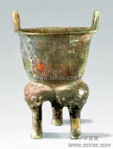 西周早期 亞黹甗通高45.5、口徑28.3厘米。連體式,侈口深腹,口沿上有一對扭索狀立耳,束腰內有隔,可置箅,下部作分襠三柱足。頸部飾三列雲雷紋組成的獸面紋,腹飾垂葉紋,垂業內填變形獸面,鬲腹飾牛角獸面。銘文字數,內壁鑄銘文6字銘文釋文為亞黹,絲□隹□(宮)。