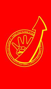 一個向上的箭頭象徵著五班正在蓬勃的向上發展,更代表著希望與熱情。展示了五班同學勇攀學習和生活中高峰的信念。班旗外部的文字代表我們五班年輕、自由的心,正與箭頭相輝映。一直向前,永不止步。班徽