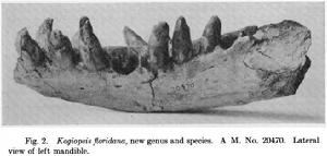 有兩種史前抹香鯨類的頜骨及牙齒和佛洲似小抹香鯨Kogiopsis floridana的相似,第一種是維吉尼亞州中新世地層發現的嵌奧巴斯托鯨Orycterocetus quadratidens , 化石僅只有細小的頜骨節片及兩顆牙齒化石得以保存 , 嵌奧巴斯托鯨Orycterocetus quadratidens的兩顆牙齒尺寸和佛洲似小抹香鯨Kogiopsis floridana的相彷 。