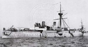 主要武器:雙聯克虜伯210mm前主炮1座(每門炮重13.5噸,22倍口徑)、1880年式克虜伯150mm炮2門(每門炮重4.5噸)、75mm克虜伯炮2門、47mm哈乞開斯速射炮2門、40mm哈乞開斯炮1門、37mm5管哈乞開斯炮5門、18吋魚雷發射管4具(3具可轉動,另外1具為固定式水下魚雷發射管,位於艦艏撞角下方)。