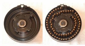 彈鼓(盤)可分為利用槍的活動機件驅動和利用彈簧驅動兩類。前者的結構比較簡單,但它要求配套的槍械上有複雜的拔彈機構,典型的套用是英國路易斯輕機槍。後者的原理類似於彈匣,由卷簧帶動某種機構以推出槍彈,美國湯姆遜M1928和前蘇聯PPSH 41式兩種衝鋒鎗都採用此類彈鼓,不過兩者結構並不完全相同。彈鼓(盤)同樣可以安放於武器的不同位置上,在槍身下方或側面的一般稱為彈鼓,而在槍身上方的通常稱為彈盤。彈盤在二戰後的武器上已經很少見到,但它具有體積小的優點,所以在部分航空和坦克並列機槍上至今仍有採用。彈鼓(盤)供彈的最大優點是容彈量大,象德普輕機槍的彈盤可容彈47發,PPSH的彈鼓可容納71發,它們的共同缺點是構造複雜、重量大。需要特別指出的一點是,有些種類的供彈具雖然稱為“彈鼓”,但結構和原理與前述的彈鼓大相逕庭,如德國MG34和國產56-1輕機槍的彈鼓,其中並無卷簧和托彈機構,只有一個殼體,實際上是一種容納彈鏈的彈鏈盒。另一種比較特殊的彈鼓就是德國盧格炮兵型手槍使用的“蝸牛”形彈鼓,其結構相當於普通彈鼓上外接了一個直形手槍彈匣,目的是在不明顯增加長度的同時增大容彈量。