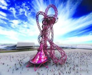 倫敦奧林匹克公園此件“RUN”藝術品由藝術家MonicaBonvicini創建,是負責建造場館的倫敦奧運交付管理局(OlympicDeliveryAuthority)負責的公園項目的一部分,藝術品高9米,也是奧林匹克公園裡最大的獨立藝術品。這件作品所用材料為鋼鐵和反光玻璃,白天能產生鏡像效應;而在夜間將由超過300米的LED照亮,將反射一系列的內部曲面鏡。