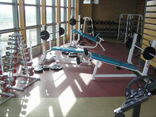 健身房常用的器械設備有:1)力量訓練器;2)跑步練習器[3)划艇訓練器;4)台階練習器;5)模擬游泳訓練器;6)溜冰練習器。