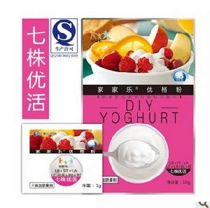 家家樂牌優格粉是採用高新技術、按照GMP標準要求生產的一種家用優酪乳發酵劑。具有菌種純度高、菌體性能穩定、使用方便、更適合亞洲人食用等特點。益生菌是人體內常駐的有益菌群,用其製作的優酪乳營養豐富、口感順滑、風味純正,不添加防腐劑和穩定劑;製成的優酪乳可根據自己的口味加入蜂蜜、果粒等調製,適合全家人享用。
