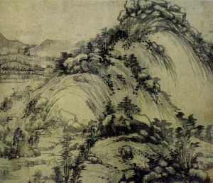 黃公望被稱為中國山水畫的一代宗師,他的山水畫“山川渾厚草木華滋”,堪稱山水畫的最高境界。《富春山居圖》作於1347-1350年間,是黃公望最花心血的作品。該畫被推為黃公望的“第一神品”。幅中描繪的是黃氏晚年山居的景色,有春明村、廟山、大嶺及富春江等一帶的山川景致。畫中有坡陀沙岸,房舍散聚,以及岡陵起伏,山勢層層疊疊,林木交錯。景物排列疏密有致,墨色濃淡乾濕並用,極富於變化。皴畫山石皆用披麻皴法,運筆時快時慢,線條有長有短且不平行排列,所以有巧妙的交錯組合。
