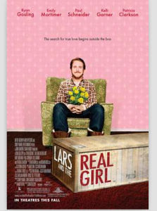 《充氣娃娃之戀》---劇情 《充氣娃娃之戀》沒有色情,沒有涉性,就是這樣單純的往來。整部電影很有北歐風情,從基調到色彩到環境,如此溫暖而明媚。男主角Ryan Gosling(瑞恩·高斯林)是個十足的演技派,和玩偶搭戲更是考驗演技並且順利過關。80年出生的他十分低調,卻有一種別於常人的老成和燦爛笑容。而哥哥Gus的老婆Karin的扮演者艾米莉·莫迪默更是個黃金配角,這個從《賽末點》之後開始受人關注的優雅而安靜的倫敦女人很適合這樣的角色。也許我們都會看著她熟悉的面龐卻叫不出名字,但從現在開始,我們應該記住她,Emily Mortimer。這部電影涌動著的溫情衝擊著所有觀眾,總是會讓人掛著微笑看到最後。
