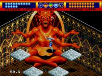 1:來到地下五層,任務是將八個世界中的男巫一一救出。從大廳中央的鑽石里可分別進入這八個世界,其中你還能體會到失重的感覺;領略美國西部的風情;見識到日本忍者的厲害和黑暗的恐怖。