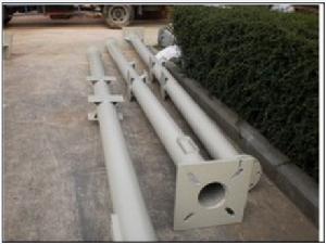 立桿鋼材材質選用優質國際標註低矽低碳高強度Q235,尺寸規格可根據用戶要求加工,預留設備支架。底部法蘭厚度≥14mm,抗風能力強、強度高、承載大。