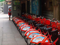公租腳踏車就是在某個區域內,隔一定距離規劃出一些停放腳踏車的點如捷運出口,社區大門口,一個租賃點放置30輛左右。那么一個城市就會象公車站點和捷運站點一樣,有很多腳踏車租賃點。通過公共腳踏車管理系統來管理這些租賃點的腳踏車,每輛腳踏車都單獨有一個可以鎖腳踏車的裝置和讀卡租車、還車的讀卡器(固定在地上的,不能移動)。每次租車把卡放到上面讀一下,鎖就開了,腳踏車就可以騎走了;騎到任何一個其它租賃點都可以還車,因為系統是連網的。還車時把車放到鎖的位置,把卡靠近讀卡器讀一下,車就鎖了,還車成功。公租腳踏車的概況