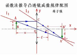 凸透鏡的成像規律是 1/u+1/v=1/f(即:物距的倒數與像距的倒數之和等於焦距的倒數。)一共有兩種推導方法。分別為“幾何法”與“函式法”幾何法