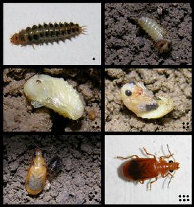 凹翅寬顎步甲凹翅寬顎步甲在山東榮成地區 1 年 1 代, 以成蟲在堰下、牆縫、土塊中、石塊下及堆積物內越冬。翌年5 月中旬, 越冬成蟲開始出蟄活動, 6 月下旬至8 月中旬為產卵期; 幼蟲期在7 月上旬至8 月下旬; 蛹期是7 月中旬至8 月下旬。當年成蟲於7 月中旬開始羽化, 10 月中旬陸續越冬。越冬成蟲多於7、8 月間產卵後死亡, 極少數可存活至第3 年春。