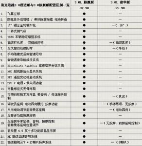 別克君越3.0豪華版與3.0旗艦版配置區別售價僅為25.98萬的君越豪華版比旗艦版便宜了7萬元整,那么這7萬元的優惠又都體現在了哪呢?首先,能在特殊條件下保護乘員安全的配置被忽略:側氣簾和VSES車輛穩定增強系統;再有就是整車的豪華程度會比原來的旗艦版有所下降,一般概念中豪華車才具有的“立式車標”沒有提供、車內桃木裝飾方向盤和按摩座椅被取消;後排奢華的音響娛樂系統被降低了一個檔次。總的來說3.0君越豪華版的出現,讓原有旗艦版“高處不勝寒”的感覺有所緩解,但是7萬元的差價還是讓我們難以理解通用別克的定價策略。