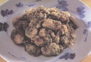 材料:蚵(牡蠣)250克、紅薯粉1杯、包種茶末1小匙、鹽1小匙。