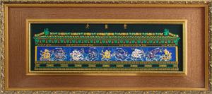 天瀛仕繡坊以北京北海九龍壁為原形,以傳統的刺繡工藝按比例完美在織物上再現了古壁神韻。其至尊無比,鎮魔驅邪的寓意會為主人招財進寶、消災解厄,帶來百世的吉祥如意和傳世百代的家業,同時象徵了權利財富,對於調理風水、護佑身心、保駕平安,有著不可小視的神力。