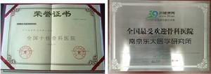 南京市誠信建設單位 2007中國最受歡迎專業骨科醫院 2008中國最受歡迎專業骨科醫院 全國十佳骨科專家醫院 全國百姓公認誠信示範醫院 南京市殘疾人福利基金會定點體檢基地 全國十佳強直性脊柱炎專科醫院 全國強直性脊柱炎培訓基地 中國質量萬里行誠信承諾成員單位