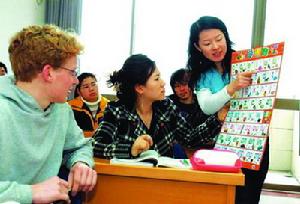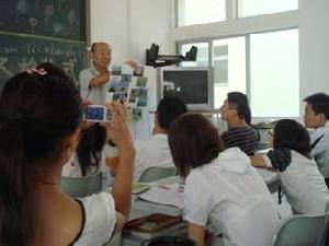 各班安排兩名老師,一名中教與一名外教,中教負責課文、句子、語法教學,外教負責口語、聽力教學。