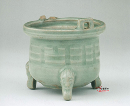南宋龍泉窯青釉獸耳銜環鼎式爐