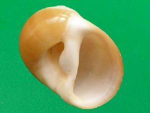 卡民玉螺玉螺外表呈球狀,殼口為半月形。內唇滑層厚,幾乎把臍孔遮蓋住。足極發達,可包被貝殼,其作用如鋤,可用來挖掘泥沙,使身體埋於沙中。玉螺的觸角呈三角形而扁平,前端尖,眼已退化,吻長能伸縮。