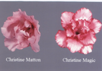 “可麗斯汀美其客”是“可麗斯汀馬頓”的一個天然突變體,通過扦插方式進行無性繁殖選育獲得。該品種屬常綠小灌木,株高20cm;葉片革質,有光澤,成熟葉深綠色(RHS 139A);星形重瓣花,花瓣匙形,全緣,有輕微的波狀;外輪花瓣長約5cm,寬度4cm,內輪花瓣長約4—5cm,寬度2—3cm,花瓣上下表面光滑,花瓣邊緣顏色最深是紅色(RHS 39B),中心部是帶有紅色火焰狀的粉色(RHS 43D);花期超過3個星期;近似品種“可麗斯汀馬頓”是單一花色,花瓣淺橙色(RHS 48D)。“可麗斯汀美其客”適宜於正常的溫室條件,也適宜於部分露天的條件下栽培。